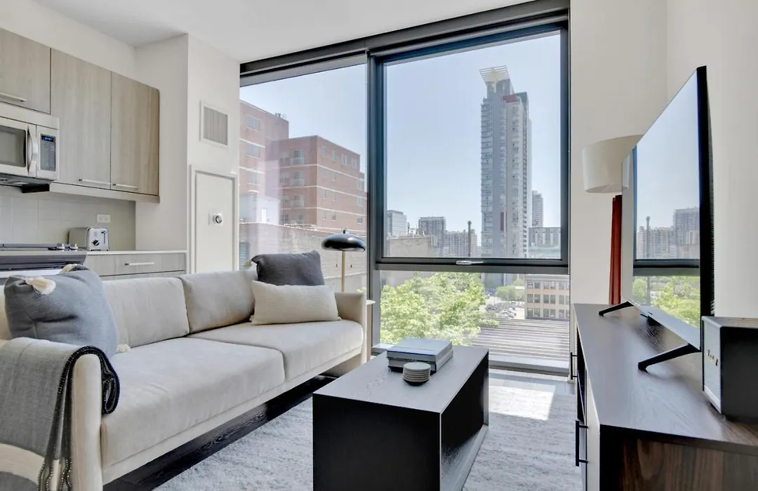 The apartment lies in West Loop with must-visit spots for foodies, eclectic art galleries and shops, and numerous acres of redeveloped park space, about 10 minutes' drive from the 20-acre public Maggie Daley Park. Guests will appreciate the 49 m² accommodation which is about 10 minutes' drive from Grant Skateboard Park.